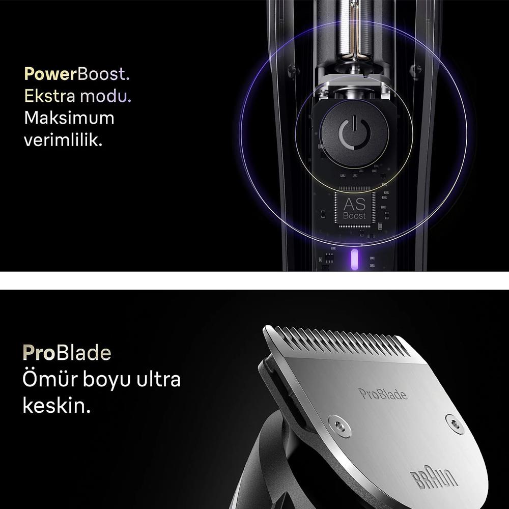 Braun Series 8En uzun tüylerde bile mükemmel sonuç:Cerrahi sınıf paslanmaz çelikle entegre Hassas Pr..