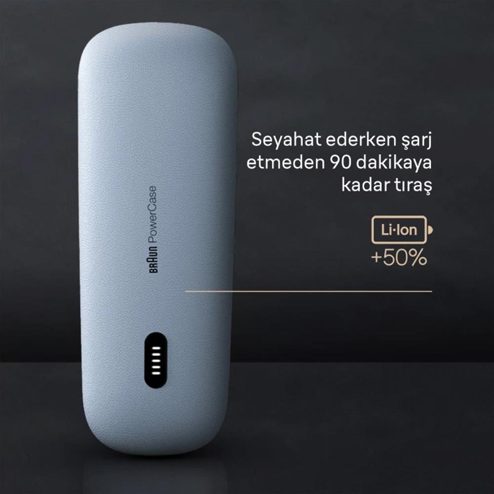 Mobil şarj kutusu PowerCase, 90 dakikaya kadar tıraş süresi için +%50 Lityum İyon güç sağlar.