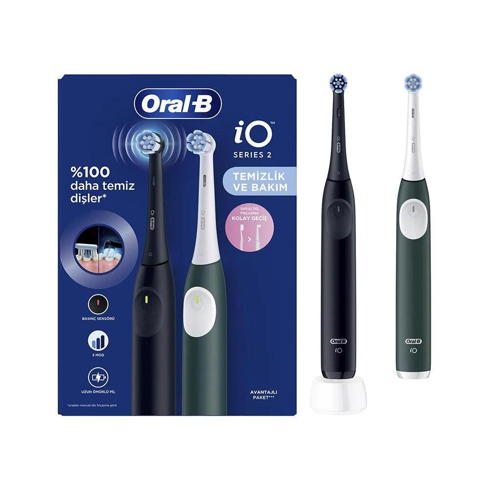 Oral-B iO2 Serisi Şarjlı Diş Fırçası 2'li Avantaj Paketi -Siyah/Yeşil Kiş31